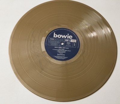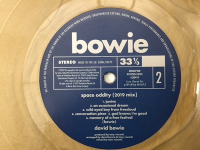 DAVID BOWIE - SPACE ODDITY LP - 2019 GOLD VINYL PRESSING - ONE OF 50 COPIES (DBSOLP50). A phenomenal contemporary David Bowie rarity with this exclusive '50th Anniversary Tony Visconti Mix' gold vinyl pressing of the iconic 1969 LP. This gold vinyl pressing was limited to just 50 copies with this copy hand numbered on the label '1990' (the records were hand numbered on the labels '1970' to '2019'). The record is in 'as new' condition showing few discernible marks. The gatefold and outer slipcase sleeves are in 'as new' condition showing very little wear. Housed with the original hype sticker on the outer sleeve which is still with the original shrink.